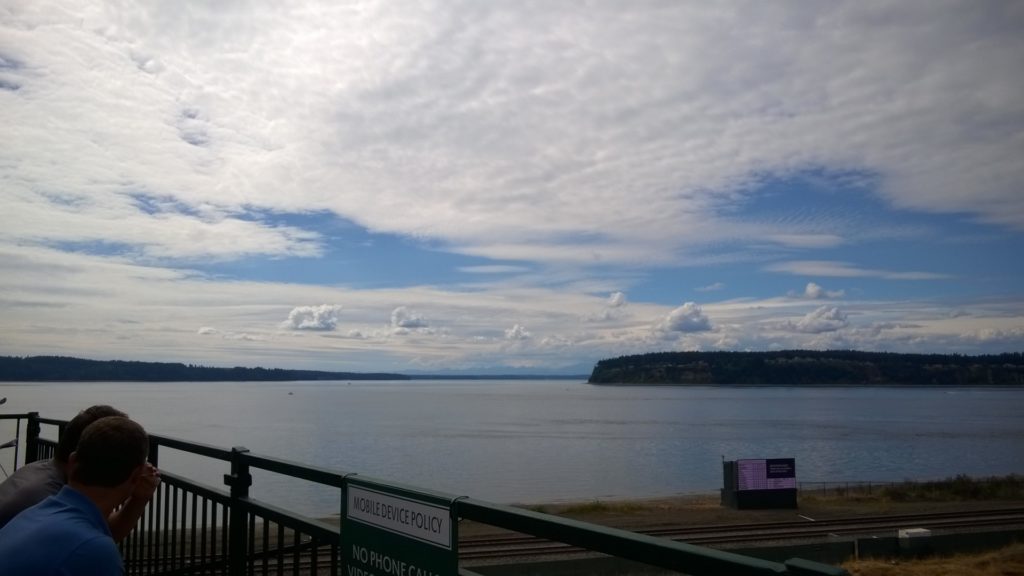 The course has a beautiful hillside view of the Puget Sound, and feels very expansive – because it is. 30,000 people a day, with only 18,000 grandstand seats – meaning over ten thousand people wandering the paths at any time.