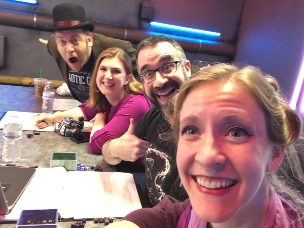Pre-show for Shadowrun: Corporate SINS Episode 16. L to R: Tony Beeman, Jeannine Clarke, Dan Posluns, Cheryl Platz.