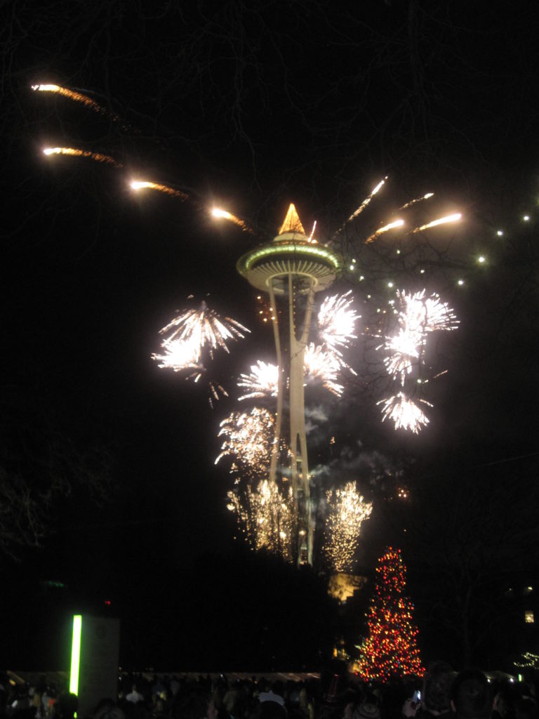 2012 started well: fresh off a winning performance in our TheatreSports NYE extravaganza, my love and I headed outside and watched the (impressive) Space Needle fireworks from the grounds of the Seattle Center. Then a night of dancing and general merriment in the foyer of the Intiman Playhouse. My kind of night, and hopefully an auspicious start.
