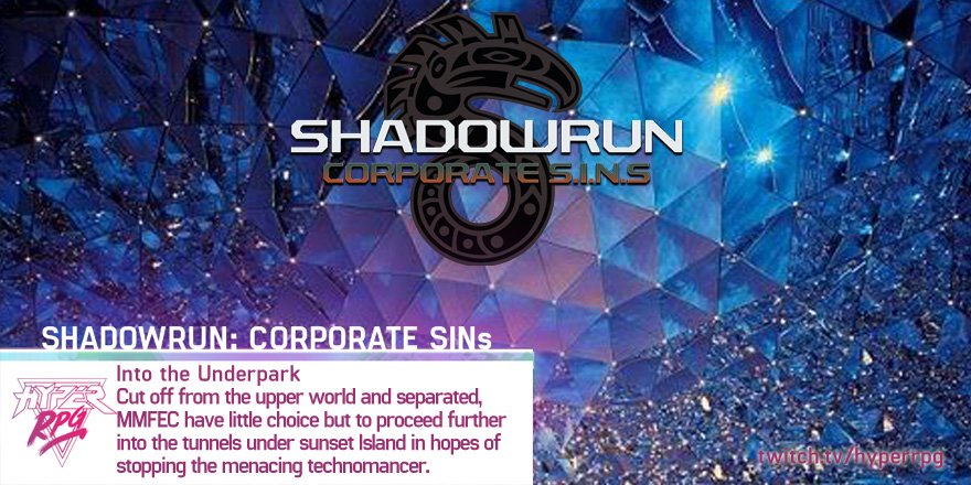 In Episode 18 “Into the Underpark”, MMFEC has been separated from their tank and faces a more “traditional” dungeon crawl laced with physical traps along the way to their goal: bringing the technomancer who’s been terrorizing the park out alive. Read on for a recap, and then join us at 6PM every Wednesday (Pacific Time) at http://twitch.tv/hyperrpg for the next LIVE broadcast!
