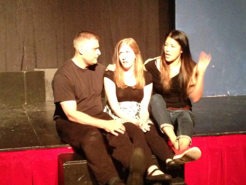 Standing there, reveling in the painful awkwardness of this strange breakup, I had moments of worry – is this the story that needed to be told? Is the audience engaged? But after the show, the audience seemed genuinely excited and enthusiastic. One woman came up and immediately hugged me, and said, “You were my favorite. You were very convincing!” That meant a great deal; mainly because that character had been so difficult to identify with. Thank you, audience member. And thank you to the cast for filling out the rest of the show in such a way that we could get away with a serious scene like that, when contrasted with the lightness found in some of the other relationships.